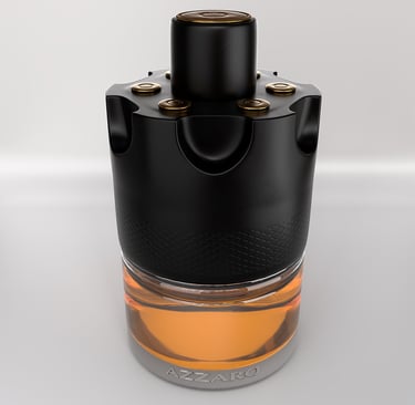 Neste projeto desenvolvi a modelagem, texturização e renderização do frasco de perfume Azzaro – Most Wanted. Criei dois renders com iluminação de estúdio e fundo neutro, destacando o design e os detalhes do produto. Além disso, produzi um terceiro render ambientado, explorando o storytelling para transmitir a atmosfera e o conceito da fragrância.